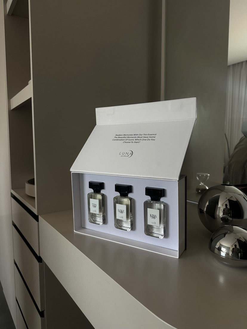 Designed to be shared, gifted, or worn for yourself, Trio Essence comes in two distinct packagings — one masculine, one feminine — making it the perfect scent to say “I love you” without words.